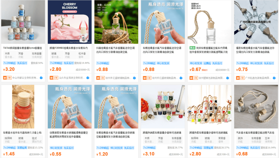 在1688平台,类似车载香薰批发价格集中于3–6元之间,与海外售价相比存在约10-63倍的价差。
