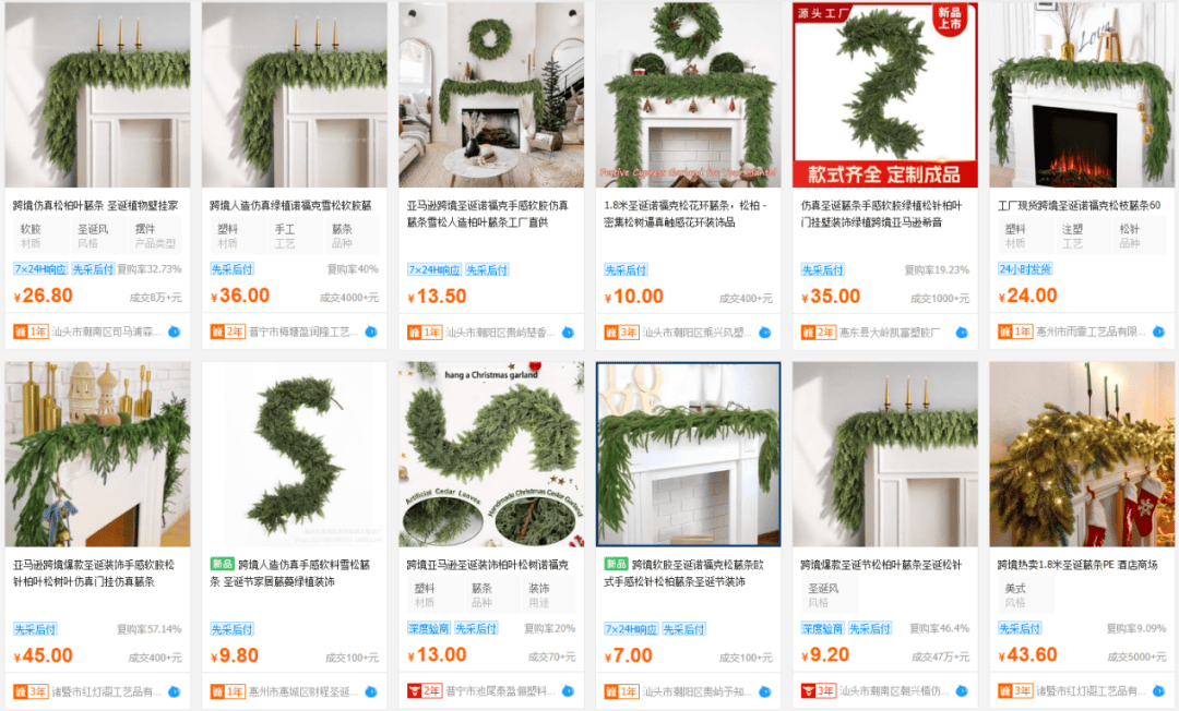 伴随节日装饰需求进入爆发期,这款仿真雪松花环凭借其逼真的自然质感和可自由弯折的柔性铁丝结构,成为壁炉、餐桌、走廊扶手等场景的装饰热门。视频中通过手触展示其“真实触感”,进一步强化消费者的认知与信任,使其成为今年圣诞布置热门产品。